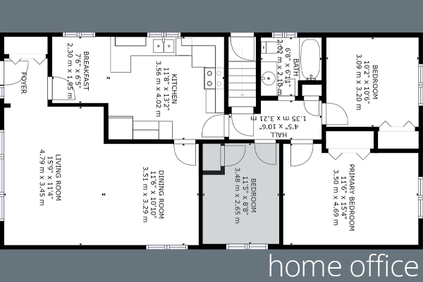 The smallest bedroom at the top of the stairs is just calling out to be repurposed into a home office. The single closet protrudes to create a recessed area large enough for an eight-foot work station. Best of all, there’s still space for a single bed if you prefer a kid’s bedroom with plenty of hidden storage and a great place to do homework!